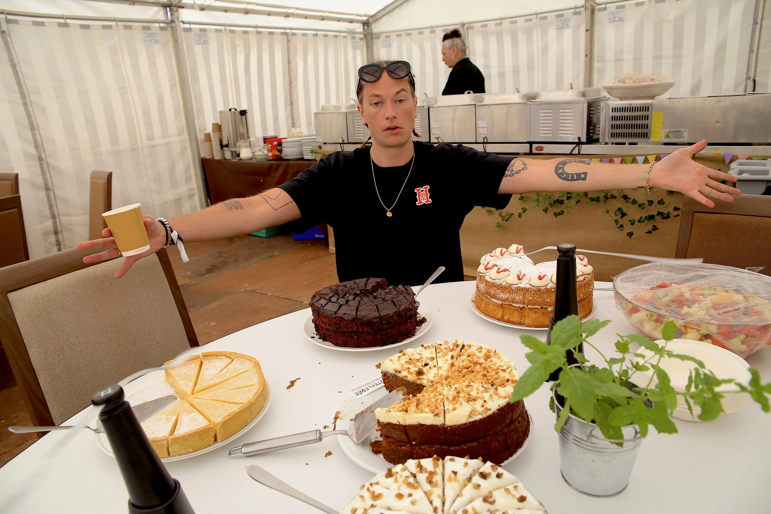 Sunday for me was a short day, owing to a family celebration, I had to leave at 2pm but this didn’t stop me arranging a chat with West London drum n’ bass artist JOE UNKNOWN, we found a seat inside the artist catering tent which was awash with cakes of every shape and form, it was tough to keep our grubby mitts off them but will power prevailed and we left without any sins added to our calorie intake!