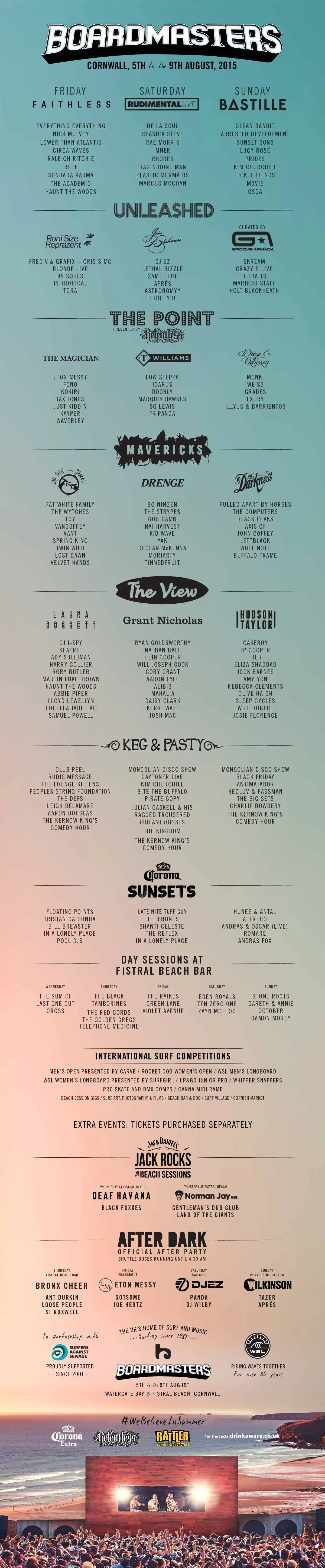 Due to ex-hurricane Bertha causing chaos across Britain, the organisers of the festival were forced to cancel the final day of Boardmasters 2014 at the Watergate Bay site, judging by the stunning weather seen on the Saturday, let's hope that the last night of the 2015 event would go according to plan!